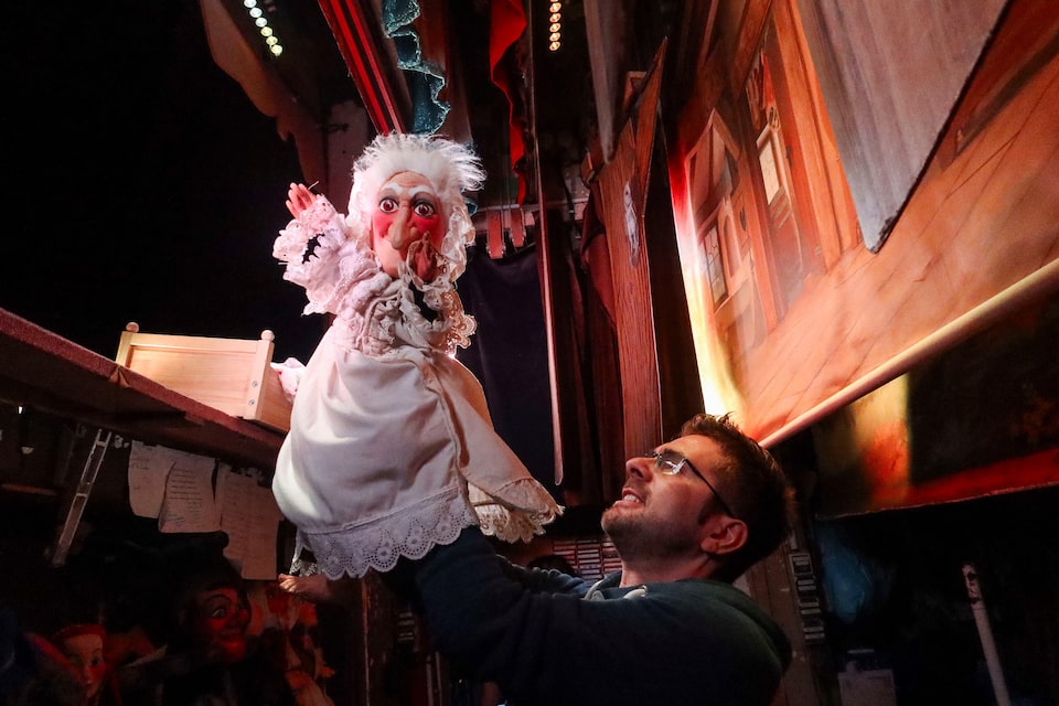 Backstage, Sommer tidied up his theatre. Touching his Little Red Riding Hood marionette, he bade the puppets goodbye.